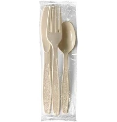 High-quality disposable forks, knives, and spoons — available loose or hygienically wrapped.